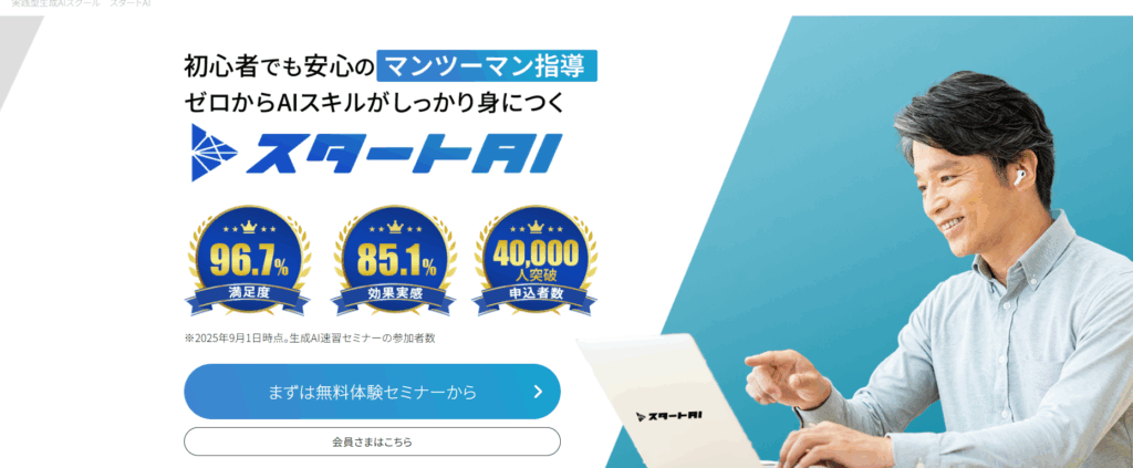 私は70代ですが、スタートAIで学んだおかげで20代の社員よりもAIを使いこなせていると実感しています。年齢に関係なく新しいスキルを身につけられるのが、スタートAIの最大の魅力だと思います。