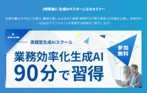 スタートaiの無料セミナーは業務効率化を図る生成AIを学ぶナー2時間のセミナーとなっています。参加は無料なので、安心して参加する事ができますね。