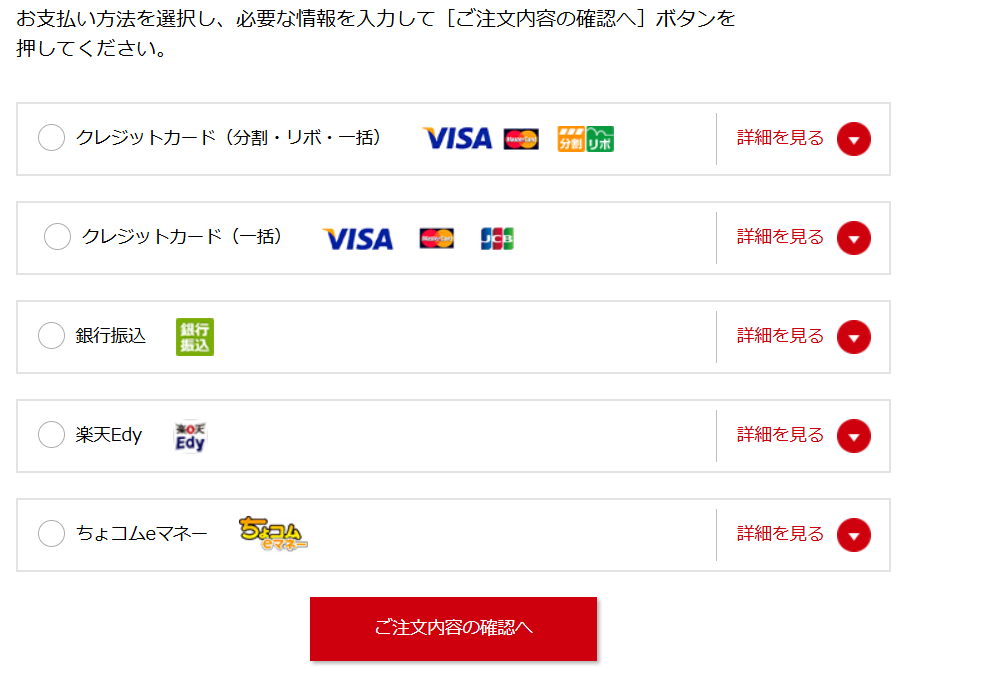 支払い方法はクレジットカード(分割可能)、銀行振り込みを選択することができます。