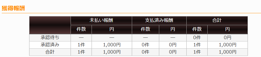 まだ1件ですが、初めて発生した報酬なのでとても嬉しかったです!