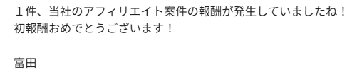 ずっとアフィリエイトは発生しなかったので、自分で気づいていなくて富田さんにメールで教えて頂いちゃいました。ありがとうございます!