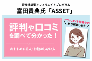ぽこママ みなさん、こんにちは。今回は富田貴典氏のオンラインアフィリエイトスク「資産構築型アフィリエイトASSET」に参加した私だから言える感想や、おすすめする人、おすすめしない人について詳しく解説していきます。